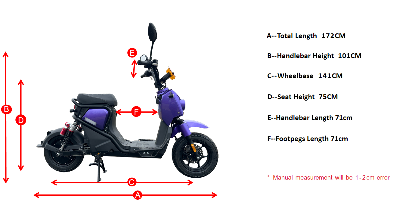ホットハッチモデルは、48V20AHリチウム取り外し可能なバッテリーを備えた電動モープスクーターです。これにより、約6〜8時間で完全に充電すると、35 kmから60 km/ 22 - 37マイルステのホットハッチノースクーターが25 km/ hの最大速度を達成でき、50 kgsで軽量化できます。